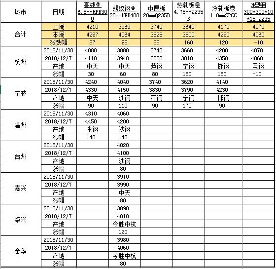 從數據來看,本周各品種價格沖高后小幅回落。具體來看,聲測管方面,本周浙江省螺旋式聲測管平均價為4064元/噸,與上周相比上漲95元/噸。本周初始建材市場大幅拉升,周中企穩,至周末受雨雪天氣影響成交不暢,價格整體回落。成交方面,本周整體情況較上周轉弱,進入12月下游需求進一步萎縮。資源方面,目前各鋼廠螺旋式聲測管資源緊缺跡象較為嚴重。熱卷方面,本周浙江省熱軋板卷平均價為3800元/噸,與上周相比上漲160元/噸。作為中美經貿摩擦緩和直接受益方,熱卷在本輪反彈中上漲幅度最大,情緒大幅修復。中厚板方面,本周浙江省中厚板平均價為3825元/噸,與上周相比上漲85元/噸。本周浙江中板沖高后明顯回落,成交不溫不火,需求疲軟。